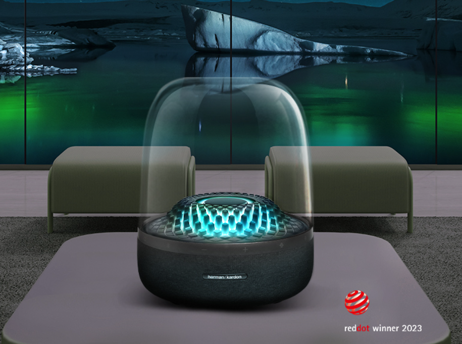 哈曼卡顿音乐琉璃四代采用经典水母造型,百亿补贴内置 360°LED 氛围灯 + 菱形钻石纹光效,期免环状布置触控按键,低音单元代音简约设计 + 浮雕工艺。